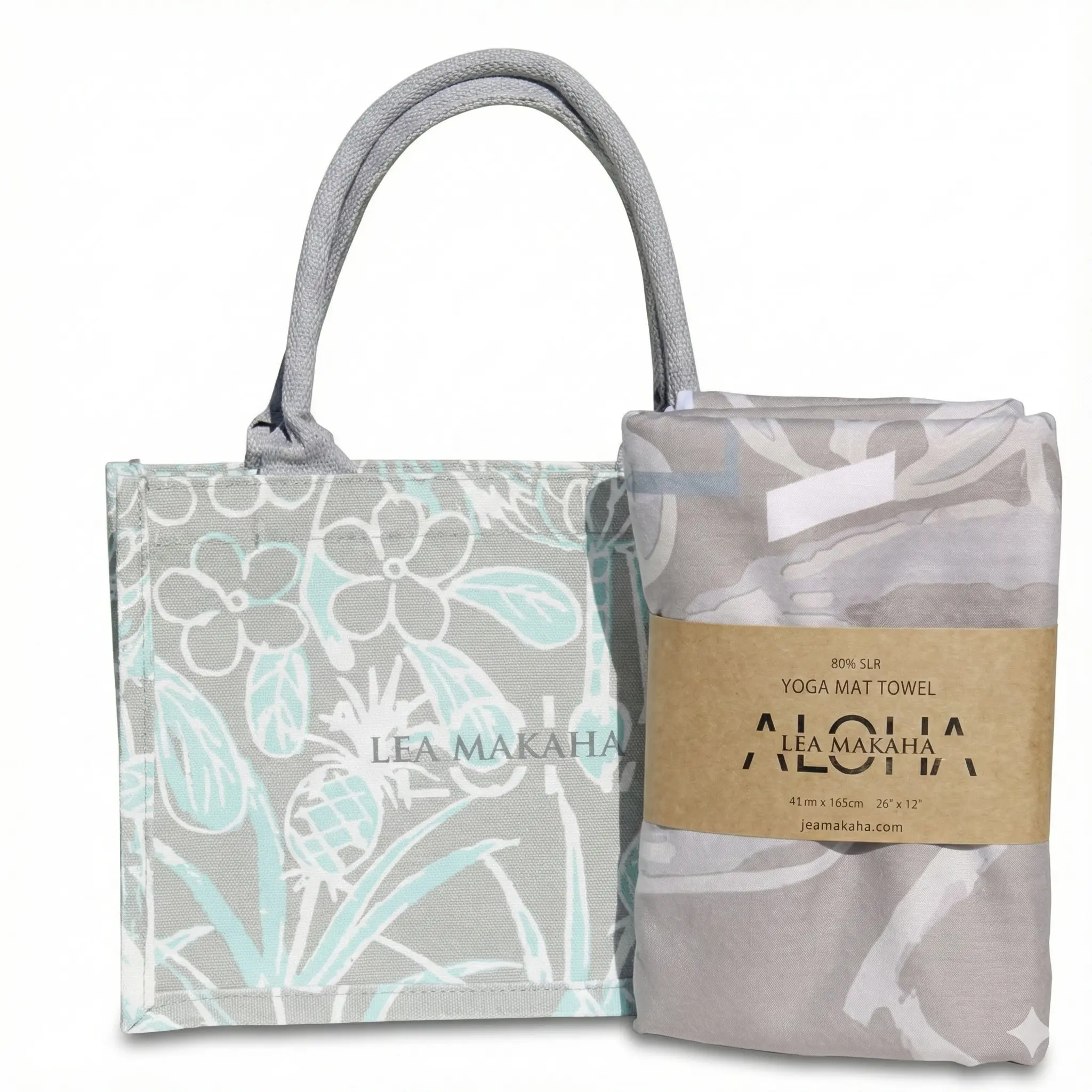 【ホリデーギフト】ミニトート(ターコイズ) × ヨガマットタオル(グレージュ)